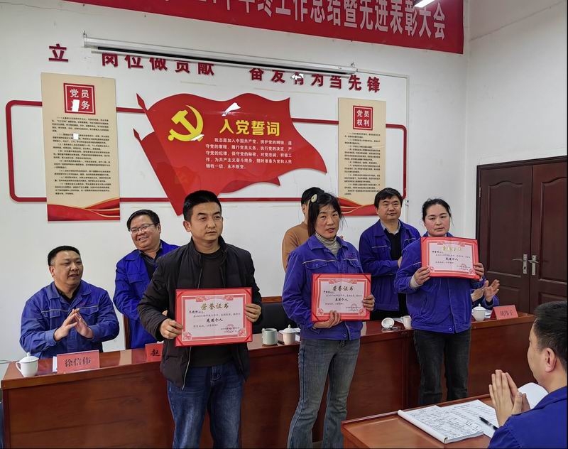 公司副總經(jīng)理趙永強(qiáng)宣讀了《關(guān)于兌現(xiàn)2024年度安全承包獎(jiǎng)的決定》、《關(guān)于表彰2024年度先進(jìn)班組和先進(jìn)個(gè)人的決定》,對(duì)2024年年度工作中作出突出貢獻(xiàn)的炭材運(yùn)行三班先進(jìn)班組、柴彬等8名先進(jìn)個(gè)人予以表彰,并頒發(fā)了先進(jìn)集體獎(jiǎng)等四項(xiàng)集體獎(jiǎng)牌以示鼓勵(lì)。